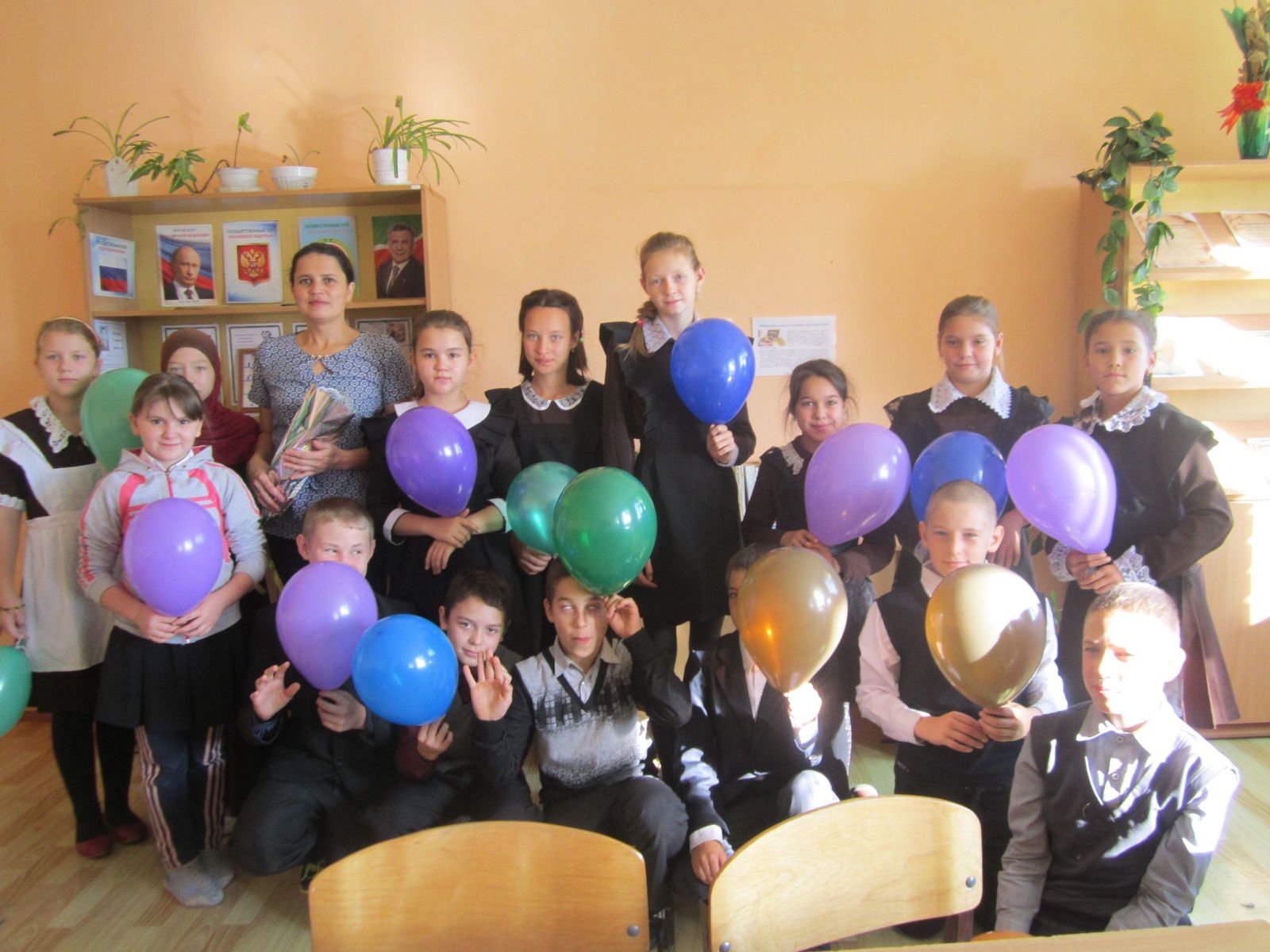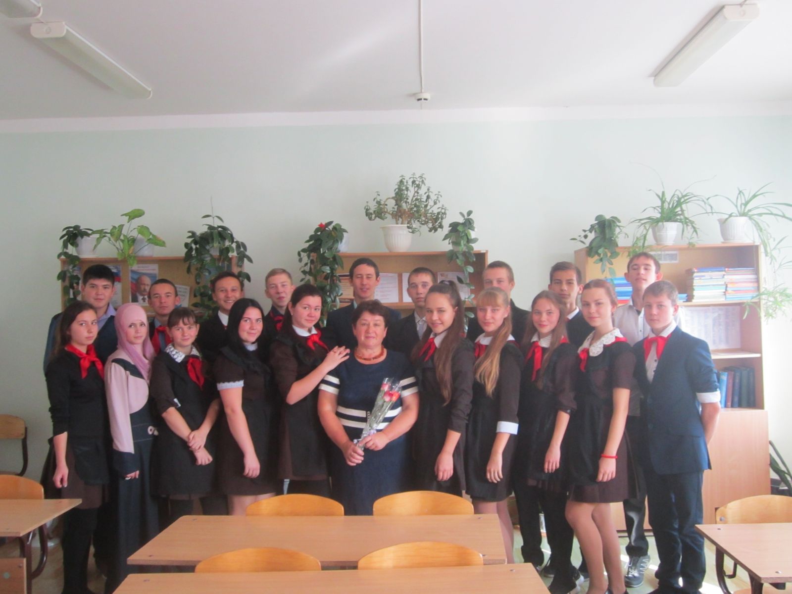 Учащиеся 9-б класса поздравили с праздником своего любимого учителя русского языка и литературы, классного руководителя Тукманову Гульнур Файзиевну и выразили ей свою огромную благодарность за те знания и жизненные уроки, которые она им даёт с 5-ого класса.