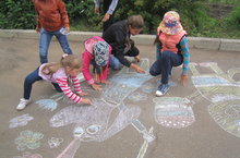 В лагере прошел День творчества. На асфальте цветными мелками дети рисовали различные рисунки. Все ребята показали свои умения.