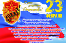 Дорогие наши, уважаемые мужчины, с Днем защитника Отечества! Поздравляем вас, желаем быть сильными, смелыми, храбрыми, могучими, находчивыми, целеустремленными, верными своим идеалами. Вы наша опора, защита, надежность. Пусть вас окружает мир, достаток и благополучие. С праздником!