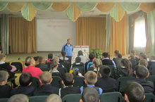 Сегодня, 4 сентября 2015 года, в школе прошла встреча с сотрудником МЧС. В доступной для детей форме Гузаиров Фидаиль Фердавесович рассказал об основных причинах и последствиях пожаров, правилах пожарной безопасности дома, на улице и в школе. Он объяснил как надо вести себя, если все-таки случилась беда, к чему может привести игра со спичками, а также показывал правила применения первичных средств пожаротушения, учил правильно действовать в случае пожара.