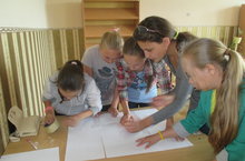 В пришкольном лагере все ребята заняты выпуском стенгазет своих отрядов.