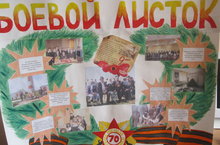 День Победы – праздник, к которому с особым трепетом относятся люди нашей страны. В деле духовно-нравственного воспитания подрастающих поколений, привития патриотических чувств важно всячески пропагандировать подвиг советского народа в Великой Отечественной войне и роль советских войск во Второй мировой. В нашей школе прошел конкурс на издание «Боевых листков». Подбирая материалы для размещения в «Боевой листок», школьники изучают статистические сводки, много нового узнают о крупных и небольших сражениях, сталкиваются с примерами каждодневного мужества, проникаются уважением к подвигу. Это помогает ребятам не только осознать величие того, что совершили их деды и прадеды, но и наполняет чувством законной гордости за прошлое Родины, желанием защитить её.