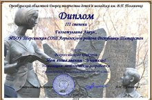 диплом III степени Пекшикова Александрв, руководитель Минглина М.В.