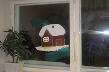 Под Новый год некоторые окна напоминают настоящие живописные полотна. Праздничные сюжеты милы и незатейливы: вот такими стали наши окна в школе. Изобразили Деда Мороза с огромным мешком, здесь – красуется пушистая елка, там – улыбается симпатичная Снегурочка и конечно символ будущего года - Синий деревянный Лошадь.