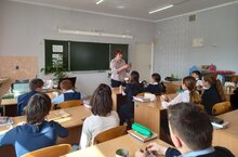Бүген, 19.04.2024 елда, Кәримова Лидия Илдус кызы «Кушу һәм алу таблицасын 20 чикләрендә ныгыту» темасына математика буенча ачык дәрес күрсәтте. Дәрес диңгез сәяхәте формасында узды. Максат итеп саннарны номерлауны, 20 чикләрендәге тәртипле исәпләүне ныгыту, 20 чикләрендәге телдән исәпләү күнекмәләрен камилләштерү, логик фикерләүне үстерү, закончалыкларны эзләү, үз-үзеңне анализлау һәм үз-үзеңне контрольдә тоту күнекмәләрен формалаштыру куелган иде. Төсле түгәрәкләр ярдәмендә укучылар үз эшчәнлекләрен бәяләделәр, шулай ук сорауларга телдән җавап бирделәр. Дәреснең барлык этапларында да беркетү биремнәренә өстенлекле роль бирелә. Контрольнең төрле төрләре кулланылган: укучы – укучы ( парларда эшләгәндә), үз – үзеңне контрольдә тоту, укучы-укытучы (үз эшен тактадагы үрнәк белән чагыштыру). Яхшы шартлар, дәрескә уңай караш, заманча ысуллар һәм алымнар сайлау һәр балага үз үсешендә алга барырга ярдәм итте.