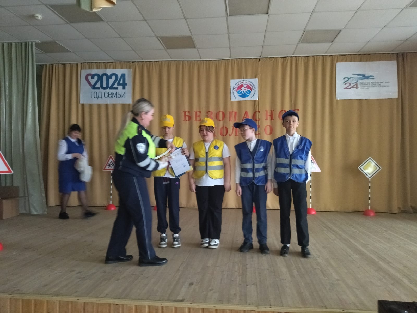 Сегодня в нашей школе состоялся зональный этап Всероссийского конкурса юных инспекторов движения «Безопасное колесо - 2024»Участникам соревнований предстояло пройти сложные этапы соревнований. Первым испытанием для ребят стало представление своей команды в творческом конкурсе Агитбригад. Юные инспекторы движения старались преодолеть волнение и выступить как можно успешнее. Затем команды отправились показывать свои знания и умения на станциях. На этапе «Знатоки правил дорожного движения» ребята соревновались в знаниях ПДД. Отвечали на вопросы по оказанию первой помощи на станции «Основы оказания первой доврачебной помощи». Отлично показали свои знания на станции «Основы безопасности жизнедеятельности». Далее юные знатоки ПДД показали свои навыки езды на велосипеде на этапе «Фигурное вождение велосипеда». Юные участники конкурса достойно прошли все испытания. Победителем стала команда нашей школы.