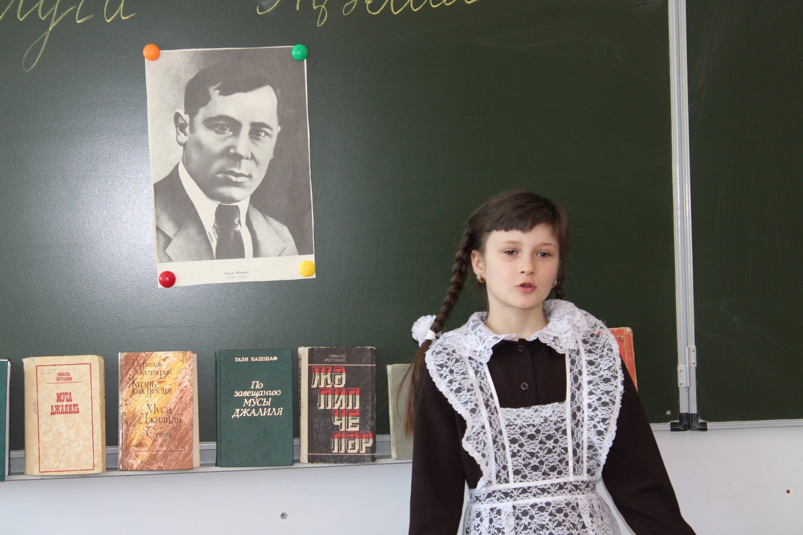 Бөек Ватан сугышы тарихына шагыйрь һәм сугышчы Муса Җәлилнең батырлыгы мәңгегә кереп калды. 15 февральдә, аның туган көнендә, мәктәп китапханәсендә аның тормышына һәм иҗатына багышланган дәрес узды. Татар теле һәм әдәбияты укытучысы Р.Р. Низамбиева әңгәмә һәм викторина үткәрде. Әлеге истәлекле датага уку залында «..Үлгәннән соң да үлмәслек итеп яшәргә.." дигән күргәзмә әзерләнгән. Педагог-китапханәче В А. Хәбибуллина үзенең укучыларын аның эчтәлеге белән таныштырды.