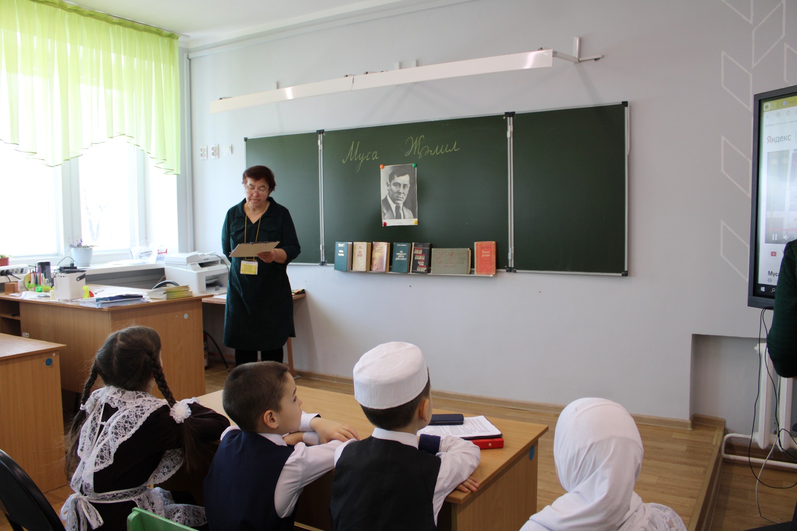 Бүген мәктәбебездә халкыбызның бөек шагыйре, Советлар Союзы Герое, каһарман язучыбыз Муса Җәлилнең 117 еллыгы билгеләп үтелде. “Муса Җәлил безнең күңелләрдә” дип исемләнгән шигърият бәйрәмендә башлангыч сыйныф укучылары, татар теле һәм әдәбияты укытучылары катнашты. Туган тел һәм әдәбияты укытучысы Луиза Зөфәр кызы укучыларны шагыйрьнең трмыш һәм иҗат юлы белән таныштырды. Аның чыгышыннан соң укучылар видеофильм карады. Резеда Наилевна һәм Гөлназ Габдрахмановна җитәкчелегендә әзерләнгән 1 нче сыйныф укучылары М. Җәлилнең балалар өчен язылган шигырьләрен сөйләде. Шигырь сөйләүдә Закиров Илмир, Гыйләҗева Рәзилә, Абзалиева Асия, Гыйззәтуллина Эллария иң актив укучылар булдылар. 4 “А” сыйныфы укучысы Алишева Илвина шагыйрьнең “Кошчык” шигырен күңелләргә үтәрлек итеп сөйләде. Укучылар шагыйрь иҗаты буенча күргәзмә белән таныштылар. Кичә ахырында Муса Җәлилнең тормышы һәм иҗаты буенча викторина оештырылды. Галиуллин Илдан, Закиров Илвир, Ханнанова Зәринә, Фәтхетдинов Данил иң актив укучылар булды. Аларга “Яңарыш” газетасыннан “Алтын йомгак” китабы бүләк итеп бирелде.