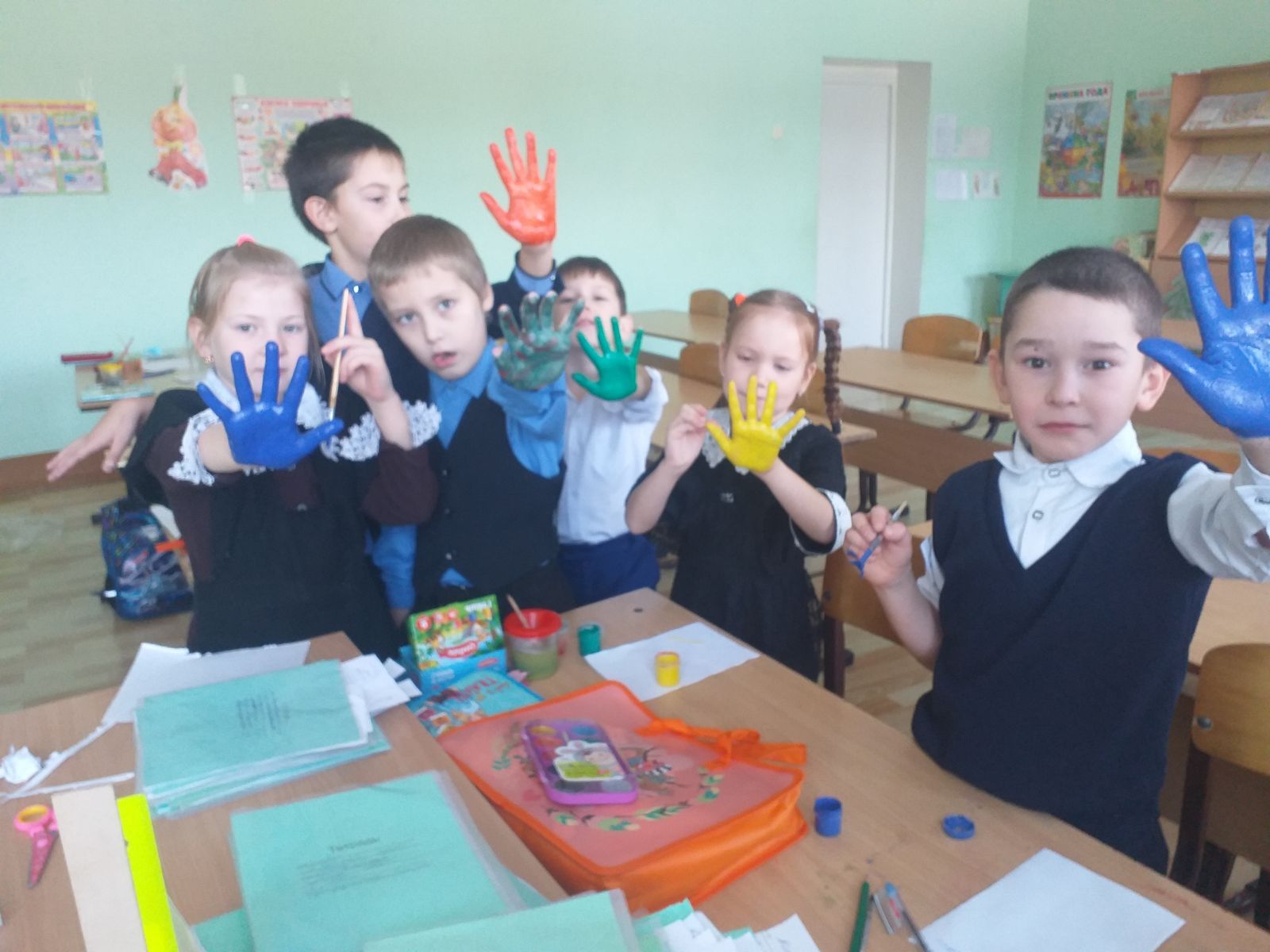 В рамках недели психологии "Шаги к психологическому благополучию" в начальном звене прошла акция «Сделай комплимент другу»и тренинг позитивного отношения. В упражнении «Ладошки» каждый участник обрисовывает свою ладошку на листе бумаги, лист подписывается. Далее участники пишут в каждой «ладошке» свое искреннее пожелание.