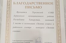 "Кышкы әкият" район смотр-конкурсында безнең мәктәп "Кышкы бизәкләр" номинациясендә 1 урынны яулады. Бу җиңүгә укытучылар, укучылар, аларның әти-әниләре, техник персонал конкурсына иҗади якын килү нәтиҗәсендә ирешелде. Барыгызга да зур рәхмәт!