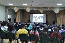 Бүген 1-5, 11 сыйныф укучылары блокадалы Ленинград турында "Тынлык тавышы" фильмын карадылар. Кечкенә Митяны әнисе ташлый, ялгызы гына блокадалы Ленинградтан эвакуацияләнә. Ятим Катя малайны сугыш куркынычларыннан һәм бәла-казаларыннан саклап калырга омтыла. Режиссер Владимир Потаповның «Тынлык иавышы» хәрби драмасы Тамара Цинбергның «Җиденче симфония» повестенә нигезләнгән.