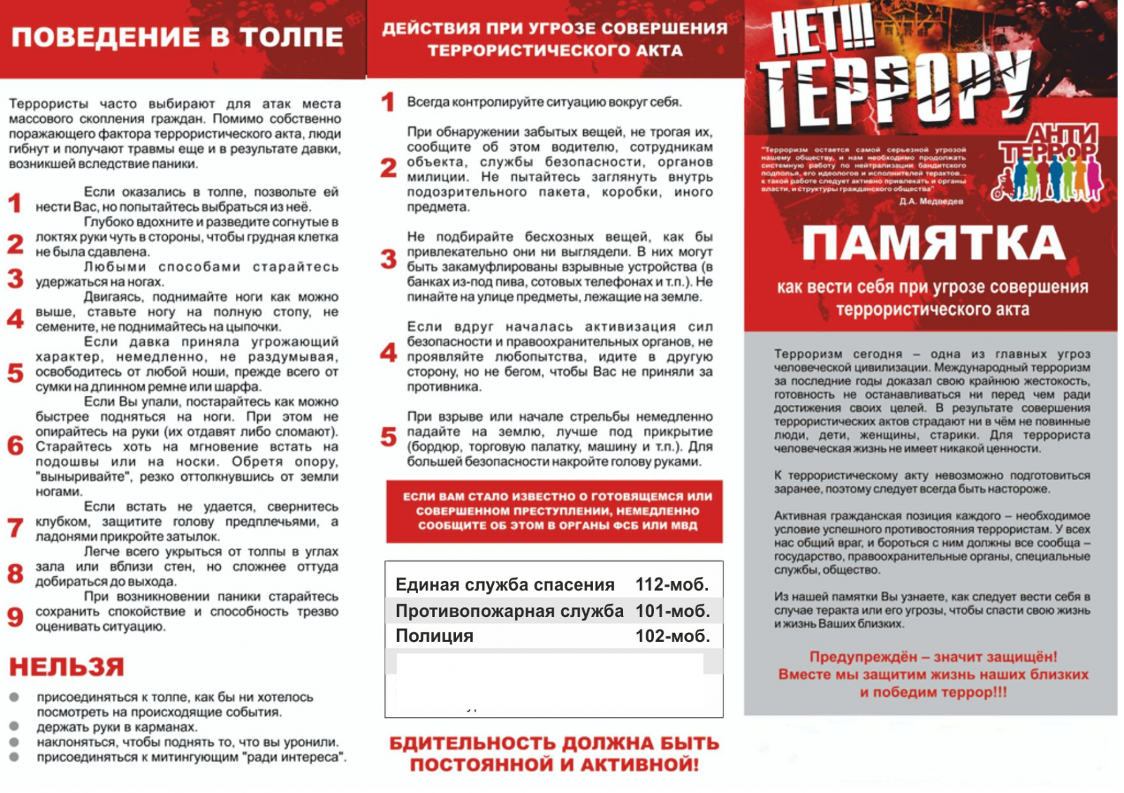 ОБЩИЕ ИНСТРУКЦИИ по ТЕРРОРИЗМУ