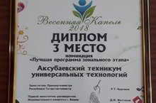 Министерство образования и науки Республики Татарстан ежегодно проводит творческий фестиваль среди студентов профессиональных образовательных организаций Республики Татарстан «Весенняя капель». Это масштабное молодежное событие, направленное на поддержку творческих коллективов, социальной активности молодого поколения, выявление потенциальных участников Культурного парка Чемпионата WorldSkills Russia» 14 марта 2018 года прошел зональный этап в п.г.т. Алексеевское, из 9 учебных заведений наши студенты заняли 3 место.