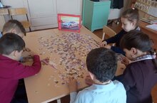 Члены кружка «ЮИД» и во время перемены без дела не сидят - собирают пазлы по ПДД.