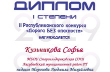 Поздравляем Кузьникову Софью, учащуюся Староильдеряковской школы, занявшую 1 место в втором Республиканском конкурсе "Дорога безопасности" и ее педагога Морозову Людмилу Михайловну