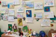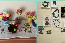 В детском саду организована выставка детского творчества "Чудеса своми руками" из природного материала.