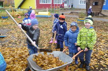 Ребята группы " Лучик" устроили осеннюю уборку на участке.