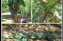 В нашем детском саду поселились забавные и приветливые создания. Какое же это увлекательное занятие - из "ничего", казалось бы, можно придумать такое , чему мы и сами не перастаем удивляться и восхищаться. Кто бы это ни был: "Царевна-лягушка", крокодил или попугай, во всех из них Николай Петрович Сидоров (муж воспитателя старшей группы, Сидоровой Ирины Владимировны) вложил свою душу. Каждая поделка заняла достойное место под солнцем.