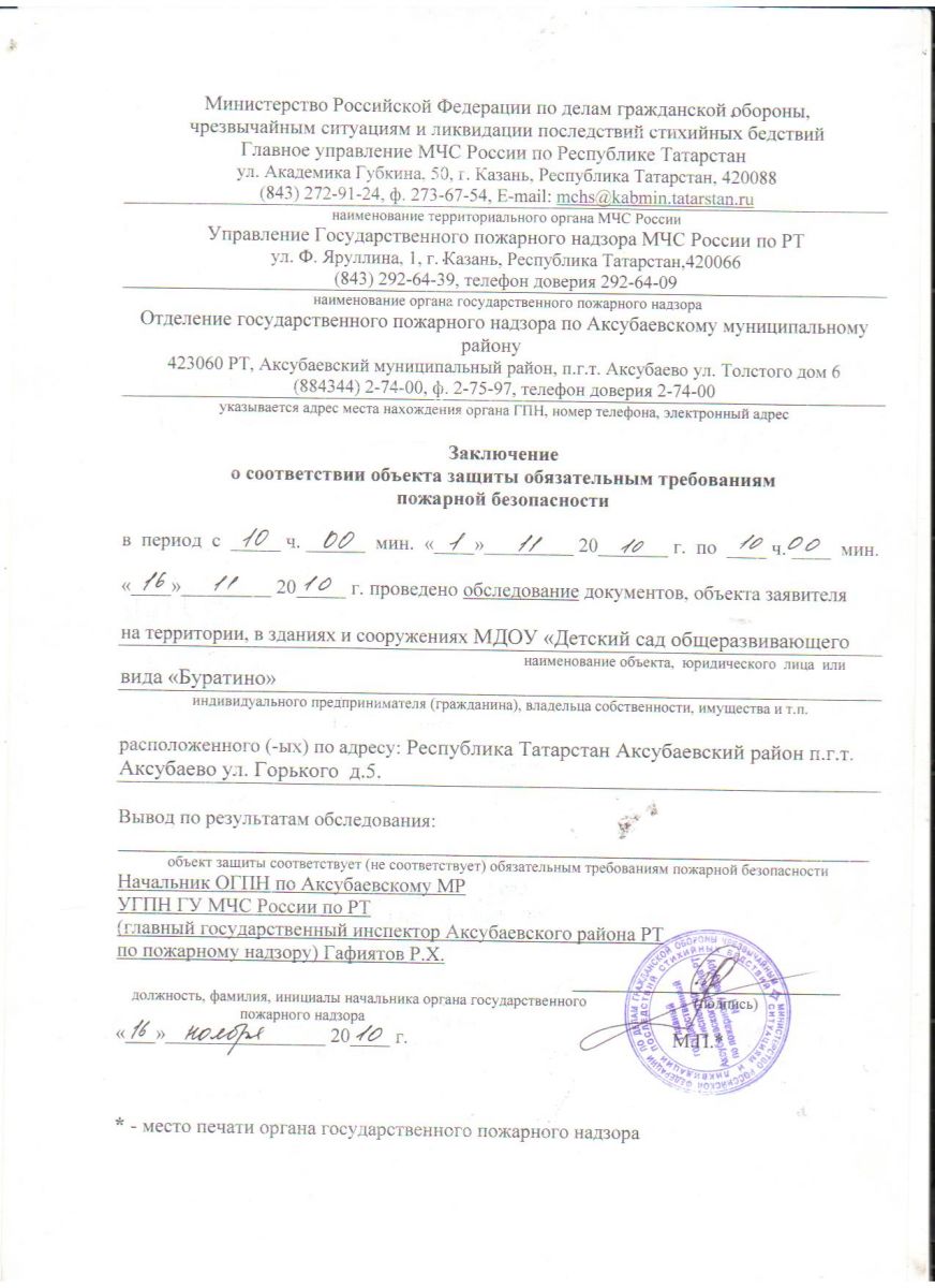 Заключение о соответствии объекта защиты обязательным требованиям пожарной безопасности