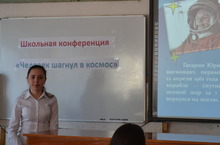 12 апреля в рамках акции «108 минут с Гагариным», состоялась общешкольная школьная конференция «Человек шагнул в космос». Девятиклассники вели разговор о жизни и деятельности первого космонавта Земли Ю.А.Гагарине. Всего 108 минут продолжался полет Гагарина, но не количество минут определяет вклад в историю освоения космоса. Он был первым и останется им навсегда.