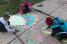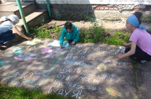 "Балаларның куркынычсызлыгы" айлыгы кысаларында шундый исем астында асфальтта рәсем ясау конкурсы үткәрелде.