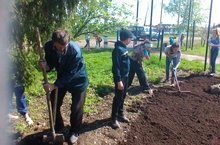 В рамках акции "Сады" на пришкольном участке посадили цветы.