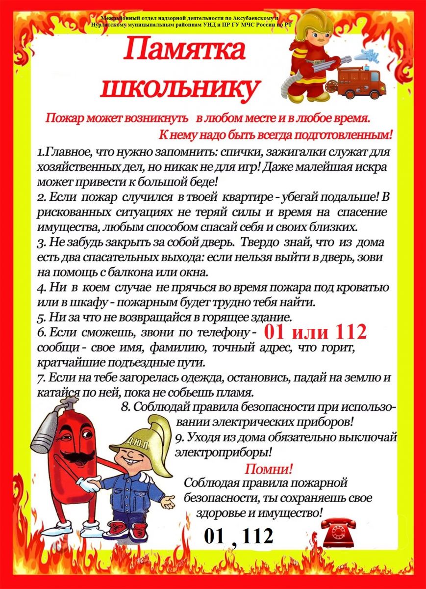Памятки пожарной безопасности для детей
