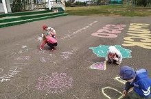 В целях развития добровольчества в Республике Татарстан и реализации концепции "Добро. Фестиваль #МЫВМЕСТЕ с 1 по 7 сентября 2021 года проводится " Добрая неделя" ("Осенняя неделя добра"). Данная акция проводится по разным направлениям добровольческой (волонтерской) деятельности. И, сегодня воспитанники нашего детского сада приняли участие в мероприятии "Яркое село". Ребята рисовали на асфальте добрые разноцветные рисунки, чтоб ещё краше наше село заиграло новыми красками.