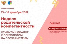 С 13 по 18 декабря 20212 года пройдет Неделя родительской компетентности – открытый диалог с психологом на сложные темы. Мероприятие будет проходит в онлайн-формате.