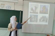Сабирова Зарина ученица 7 класса представила свой исследовательский проект по теме "Зеркальная симметрия в детской игрушке -калейдоскоп"