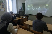 Кроме этого, ребята смогли посмотреть ролик с выставки «Россия», которая проходит в Москве на ВДНХ, включение из павильона № 57, экспозиция «Просвещение. Большие перемены», провели обзор отрасли - сравнили факты из прошлого с фактами сегодняшнего дня, посмотрели ролик «Интервью с экспертом», в котором представитель профессии рассказывал о своем труде.