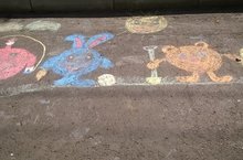 Балалар төсле акбурлар белән асфальтка мульфильмнан персонажлар ясадылар.