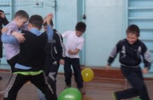Холода отступили, что позволило ребятам возможность собраться в спортзале школы на игру "Весёлая эстафета"