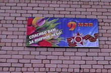 Баннер к 70-летию Победы 10.04.2015 На школьной стене со стороны основного выхода на улицу установлен баннер, посвященный Дню Победы с надписью "Спасибо вам за мирное небо"