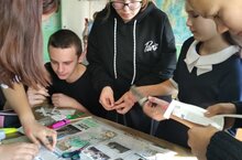 В ходе классного часа семиклассники увлечённо работали над созданием коллажа "Родина для меня-это.... "