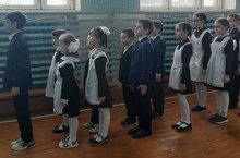 В школе прошел смотр строевой песни. Не смотря юный возраст, парни хорошо справились со своими обязанностями командира отрядов.