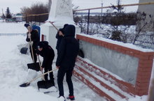 Очистка территории обелиска перед школой 13.02.2020