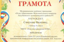 XV республиканская НПК школьников имени Л.Н.Толстого 15.03.2017 Победителем на муниципальном этапе XV республиканской НПК школьников имени Л.Н.Толстого стала ученица 8 класса Симухина В.(Руководитель- Павлова Л.В., учитель русского языка и литературы) Поздравляем!