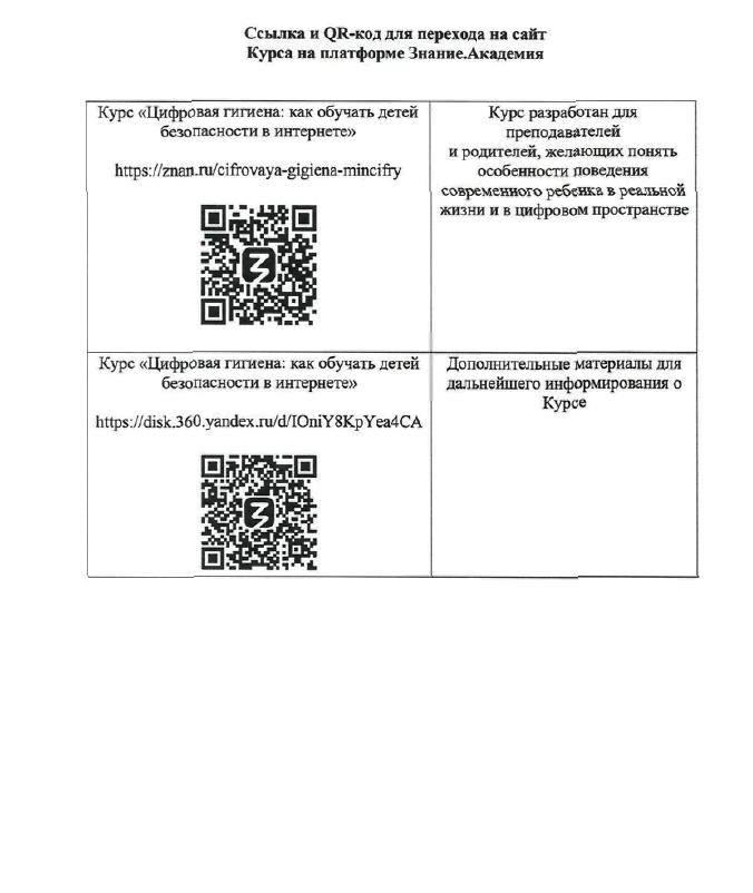 Ссылка и QR -код для перехода на сайт Курса на платформе Знание Академия