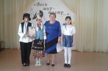 На районном конкурсе "День родного (русского) языка", посвященного Году театра в России заняли 1 место среди начальных классов в инсценировании русской народной сказки "Кому мыть горшочек".