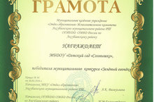 Грамота за победу в муниципальном конкурсе "Зеленый огонек" 26.02.2016