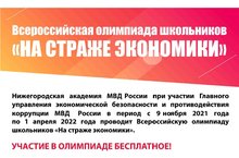 Нижегородская академия МВД России при участии Главного управления экономической безопасности и противодействия коррупции МВД России проводит среди учащихся всех регионов Всероссийской олимпиады школьников «На страже экономики».