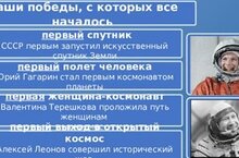 На занятии «Разговоры о важном» 6 апреля говорили о космосе. И не случайно: в этом году в стране отмечают сразу две важные даты — 65 лет с момента первого полета человека в космос и 80 лет отечественной космической отрасли. Тема урока сформулирована так: «65 лет триумфа. Ко Дню космонавтики».