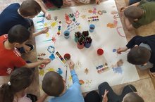 Балалар бакчасында зурлар төркеме белән "Җәйге хәтирәләр" дигән темага күмәк рәсем ясадык.