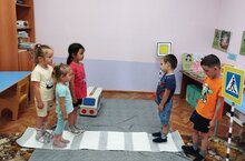 В последние годы в республике растет количество автотранспорта, автомобильного движения на дорогах. В связи с этим возрастает риск попадания детей в ДТП. А это, в свою очередь, подчеркивает необходимость обучения детей правилам безопасности дорожного движения с дошкольного возраста. Продолжаются занятия по изучению правил дорожного движения для детей дошкольного возраста. Организовано укрепление знаний, полученных на предыдущих занятиях, в игровой форме, с помощью картин-плакатов. Особое внимание уделяется повторению правил проезда на велосипеде. Для укрепления достоверности полученных знаний уделяется внимание сопоставлению дорожных знаков с мозаикой.