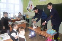 1. Сишәмбе көнне , физикадан олимпиаданың муниципаль турында катнашкан укучылардан торган төркем, башлангыч сыйныфлар өчен физикадан кызыклы тәҗрибәләр үткәреп, тәҗрибә нәтиҗәләрен аңлатып бирделәр. Башлангыч сыйныф укучылары тәнәфес тәмамлангач та, “физик абыйларын” җибәрмичә, тәҗрибәләргә карата һәртөрле сораулар белән күмделәр. 10 нчы сыйныфның кызлары башлангыч сыйныфлар мавыктыргыч физик материаллар хәзерләп чыгыш ясадылар.