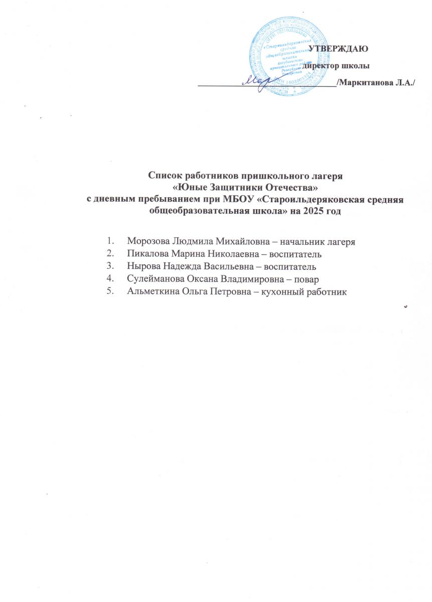 | Короткое название: | МБОУ «Староильдеряковская СОШ» |