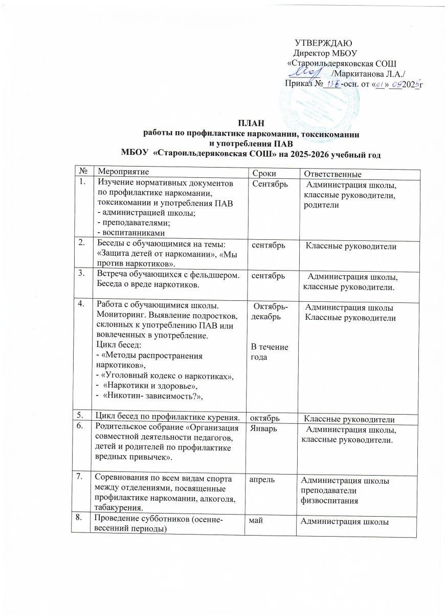 | Короткое название: | МБОУ «Староильдеряковская СОШ» |