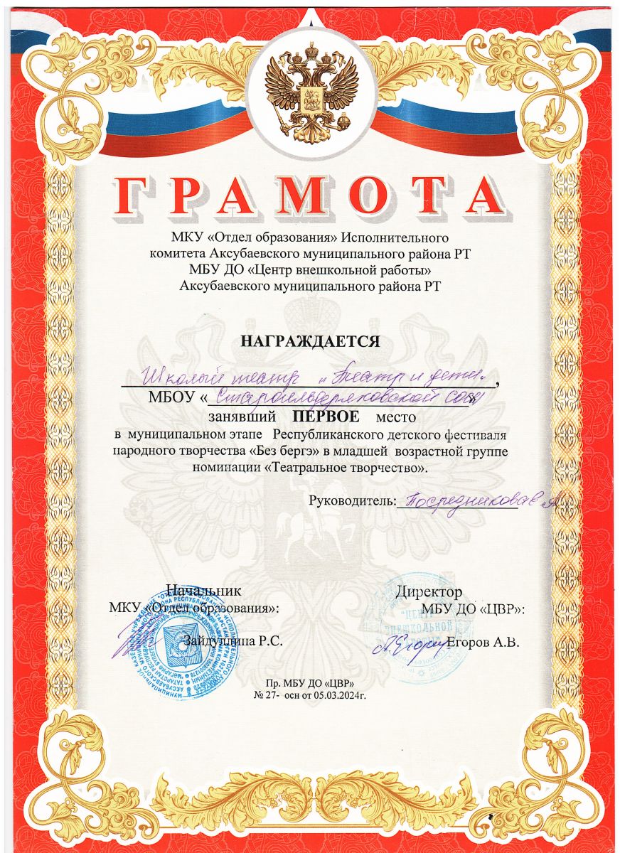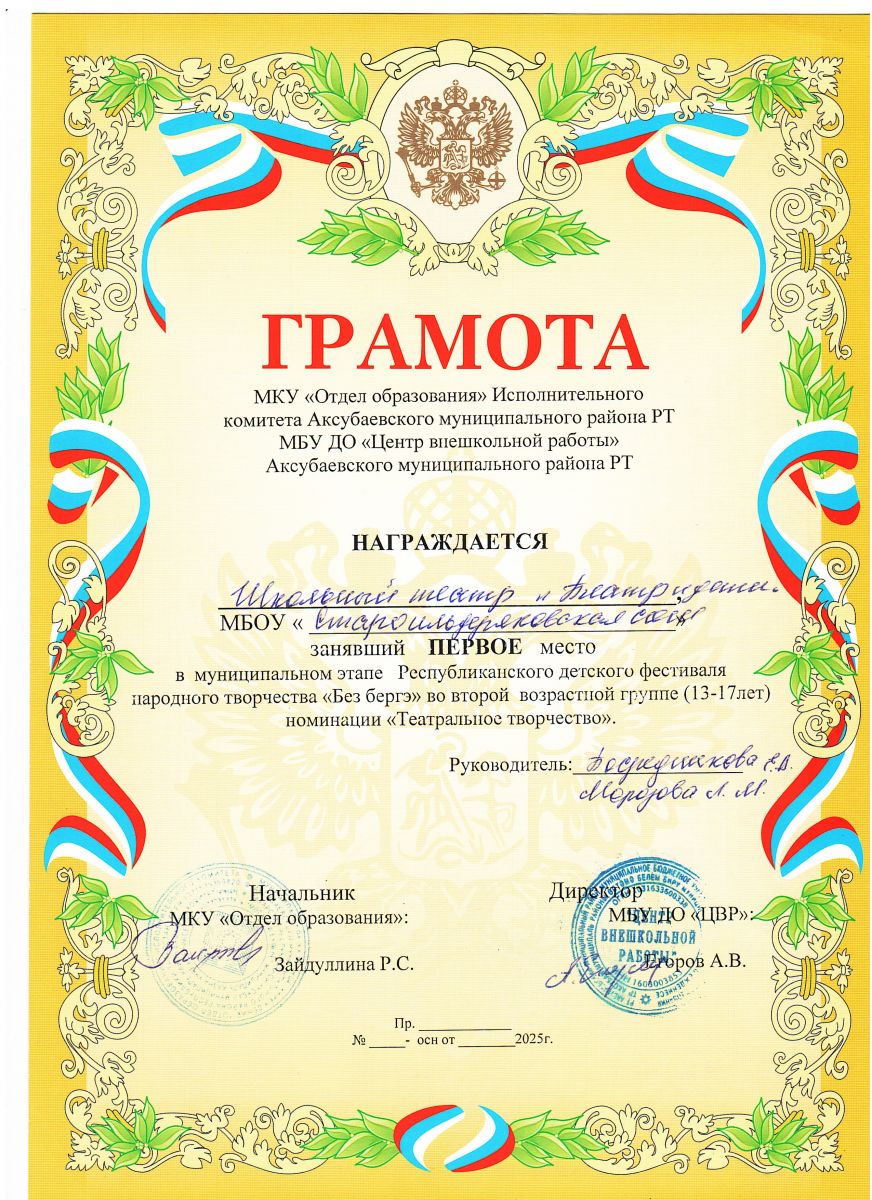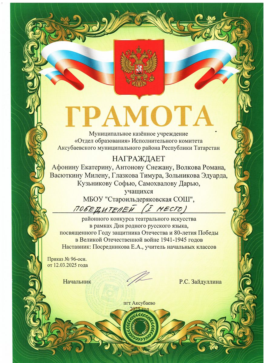 МБОУ «Староильдеряковская средняя общеобразовательная школа» Аксубаевского муниципального района Республики Татарстан/Татарстан Республикасы Аксубай муниципаль районың "Иске Ильдеряк урта гомуми белем бирү мәктәбе" муниципаль бюджет гомуми белем бирү учреждениесе