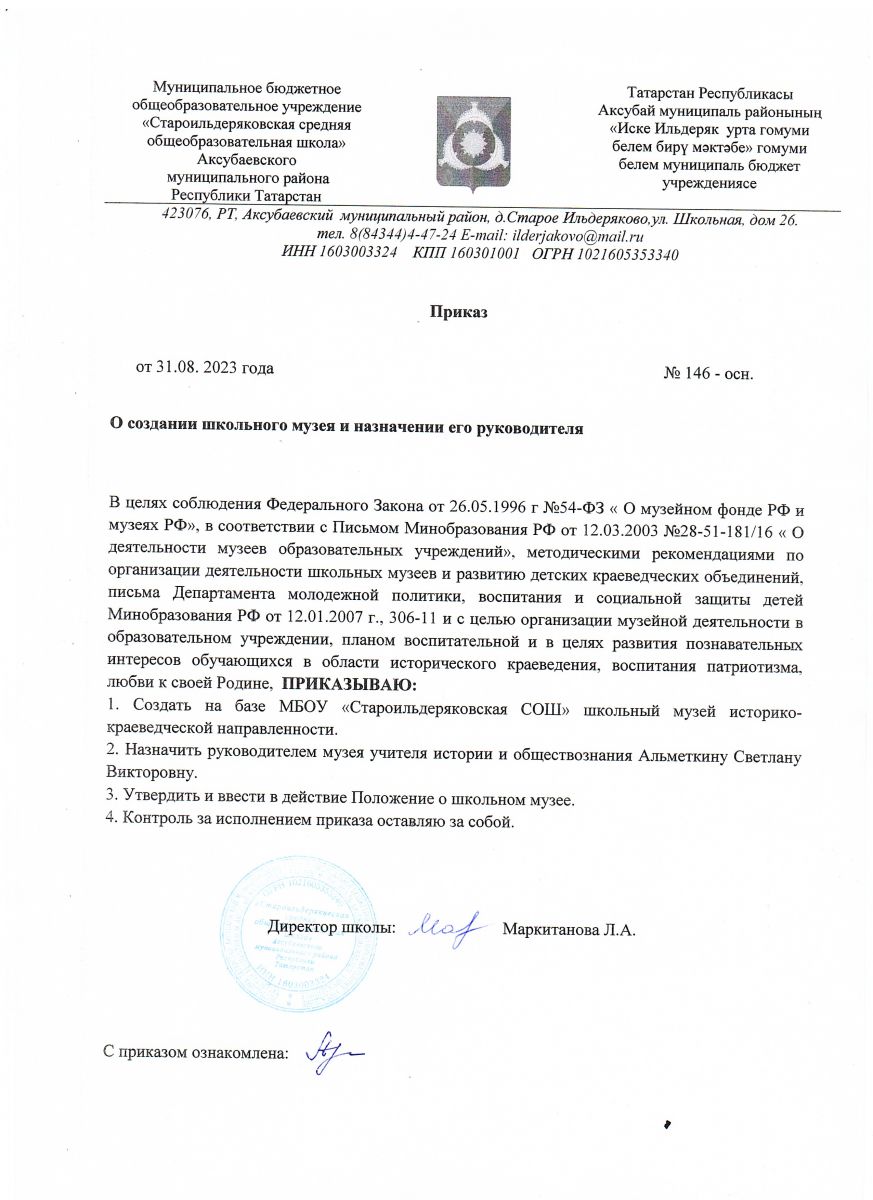 | Адрес: | 423076, Республика Татарстан, Аксубаевский муниципальный район, село Старое Ильдеряково, ул. Школьная, дом 26 |
